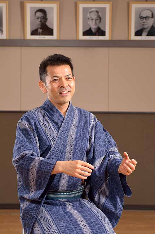 江戸は日本橋、駿河丁越後屋呉服店前で夕七つが、若旦那との約束——この秋、三越劇場で公演される、井上ひさしの秀作『たいこどんどん』の冒頭の台詞だ。日本橋から始まる抱腹絶倒なストーリー、膨大な台詞の量、総勢16名の役者が演じる95人の登場人物が舞台を駆け巡る。「中村梅雀さんが主役を務め時に僕も出演していたんですけど、もう劇場が揺れるほど、笑いがドカーンドカーンと起きるような芝居なんです」と、今回主役の桃八を演じる前進座の中嶋宏太郎。創立85周年を迎えた前進座の記念公演にあたる今公演を成功に導くため、分厚い台本を手に稽古に励む。